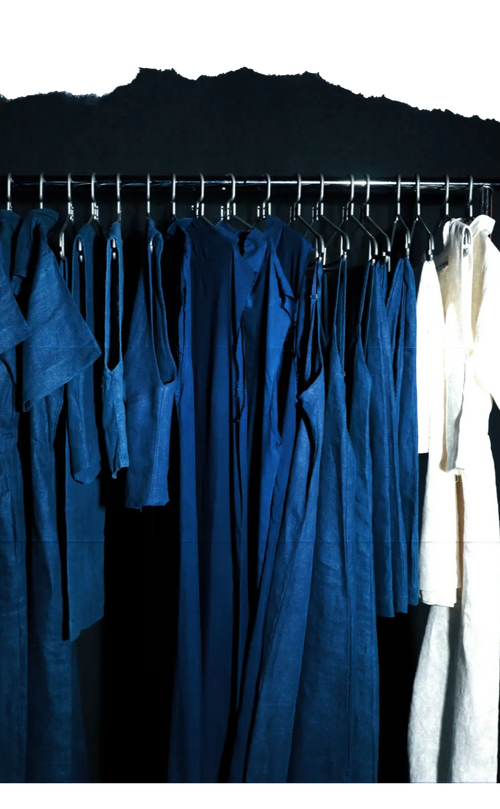 We work with linen, tencel, a tiny bit of modal and hand woven cotton for the belts.